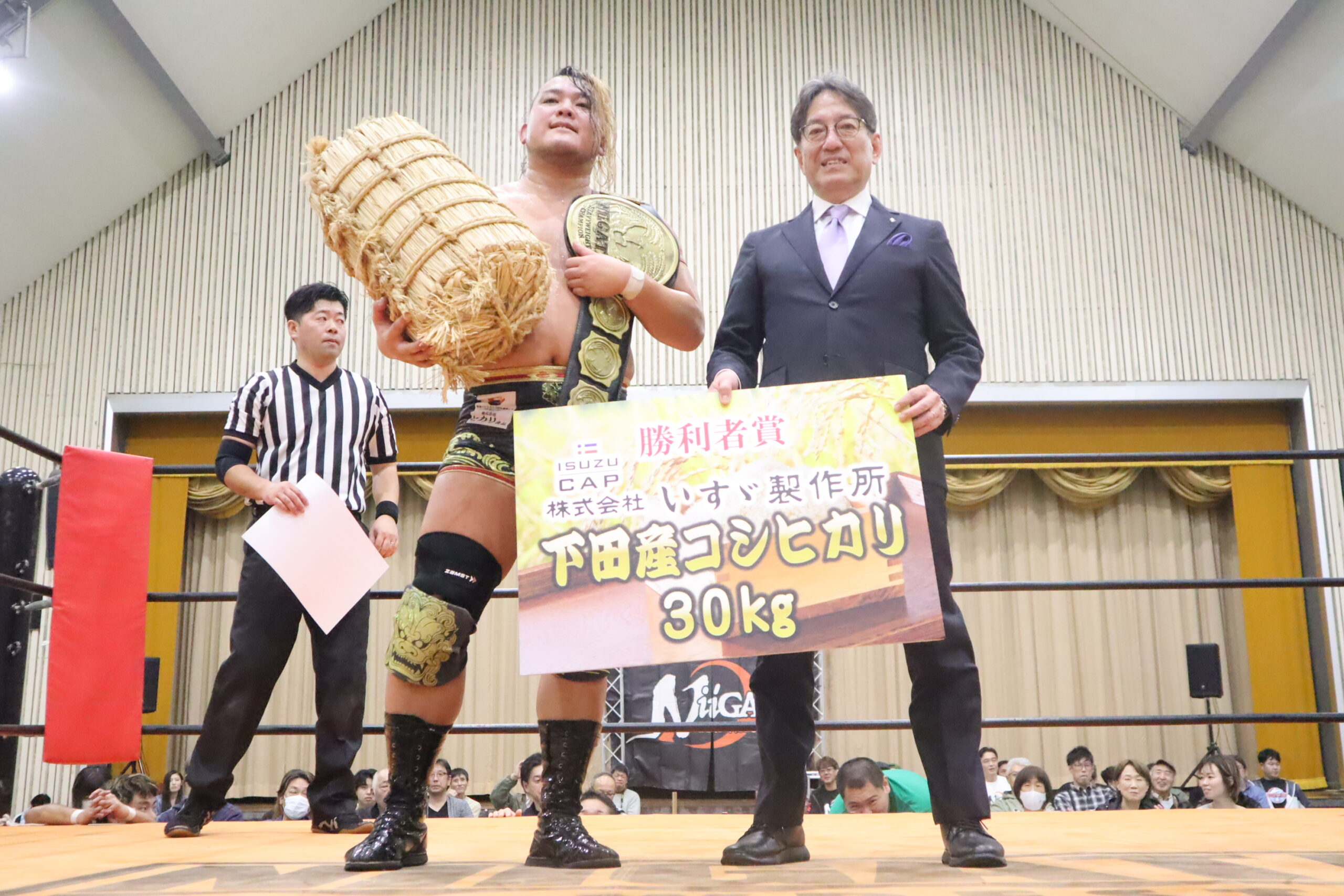 ▼メインイベント 「株式会社いすゞ製作所presents 新潟ヘビー級選手権試合30分1本勝負」